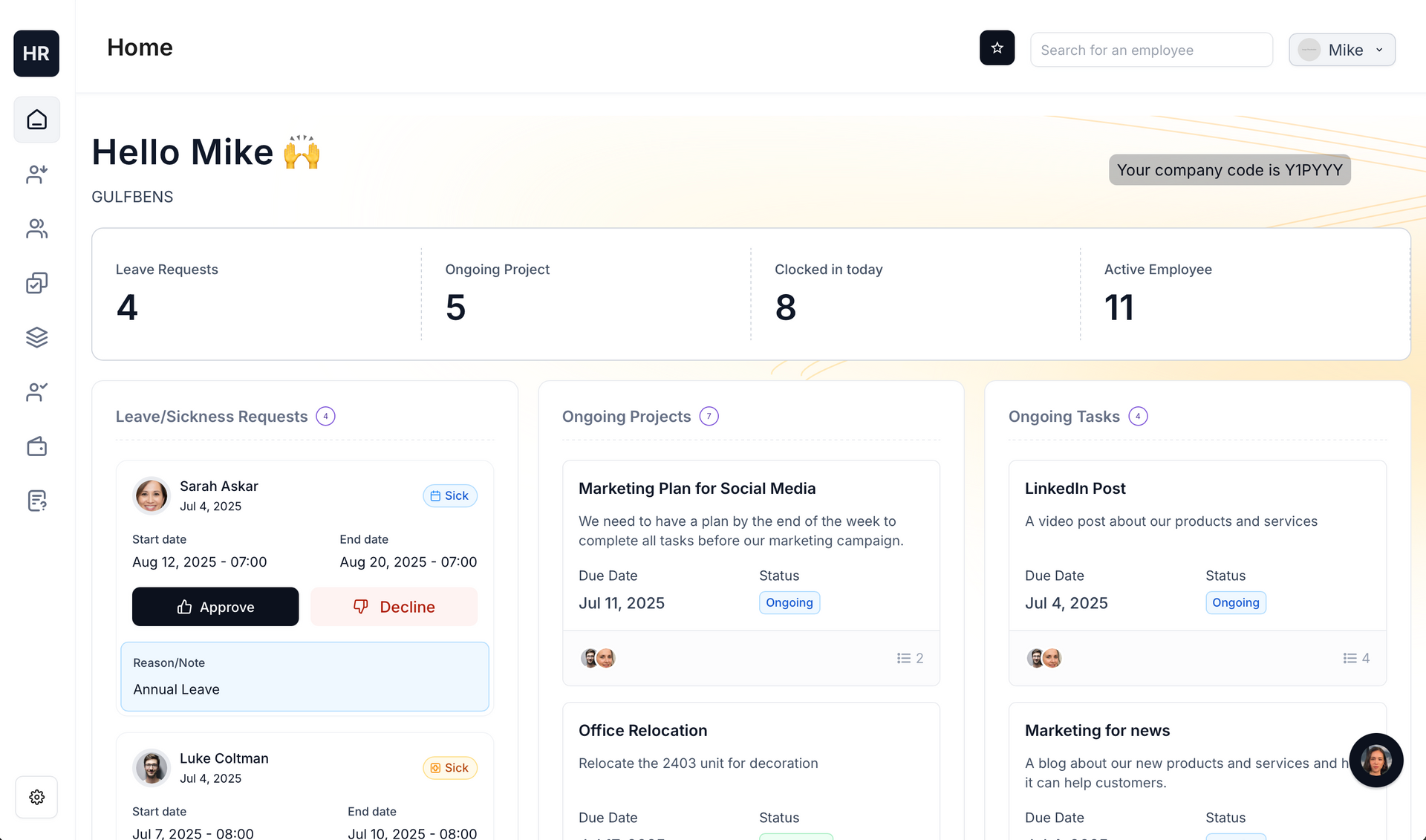 From onboarding to offboarding, Maya automates HR tasks like scheduling shifts, approving leave, and guiding employees step by step.