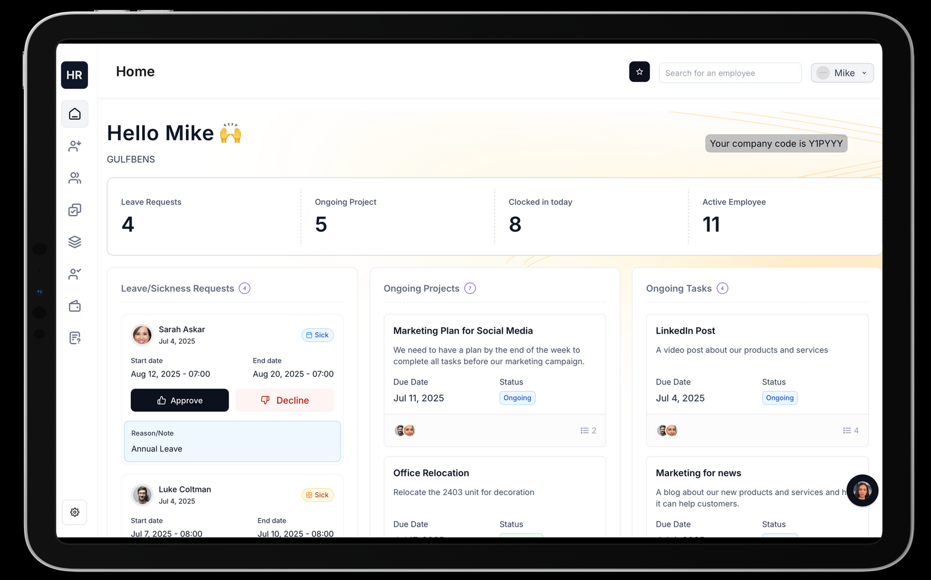 A modern approach to workforce management. Attendance, leave, payroll, projects, and tasks are all in one place, giving you real-time clarity, control, and smarter decision-making.